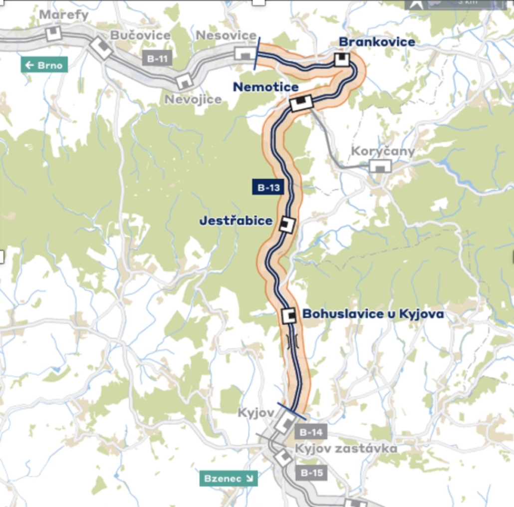 Místo stavby: železniční trať Nesovice – Kyjov